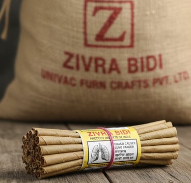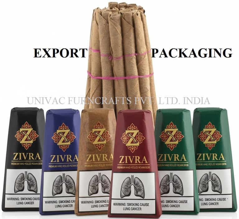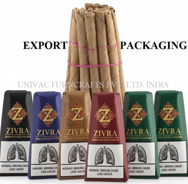 Univac Furncrafts Pvt. Ltd. brings over a decade of specialized expertise in the global export of Indian bidis under the premium brand name "Zivra" Since 2014, we have successfully catered to diverse regulatory landscapes across Africa, Europe, the Arabian Gulf, the United States, and Latin America, customizing our packaging to meet each region’s statutory health warning requirements.