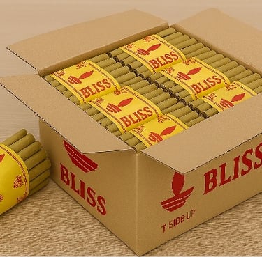 Indian hand-rolled bidi (cigarette) crafted with traditional expertise and global standards. Manufactured by Univac Furncrafts Pvt. Ltd. since 2013, Bliss bidis are known for their rich aroma, tightly wrapped tendu leaves, and consistent burn quality. Each bundle reflects the heritage of Indian tobacco craftsmanship, while the packaging—featuring the iconic red flame and bold "BLISS" branding—meets international export norms. Today, Bliss bidis are exported worldwide, offering a distinctive smoking experience rooted in Indian tradition and trusted by global connoisseurs.